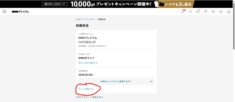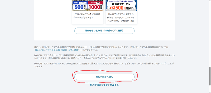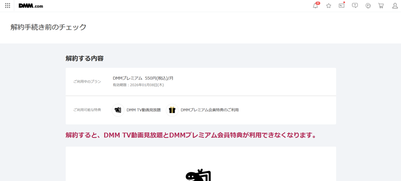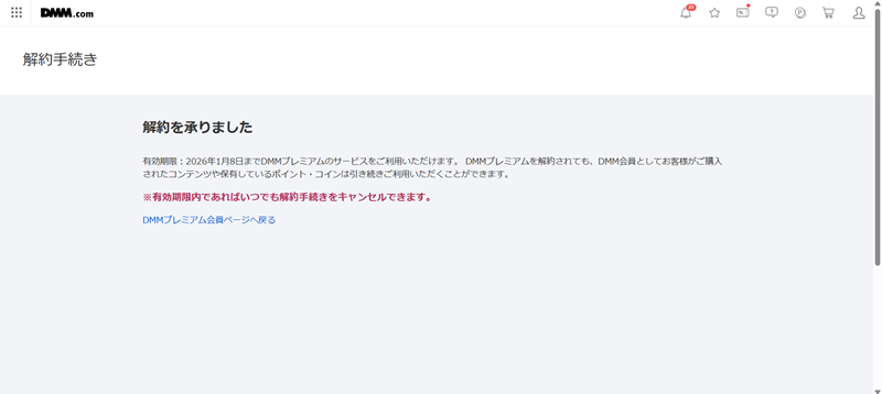 ここで解約しないと、DMM公式サイトでいくら操作しても「契約が残ったまま」という状態になってしまいます。